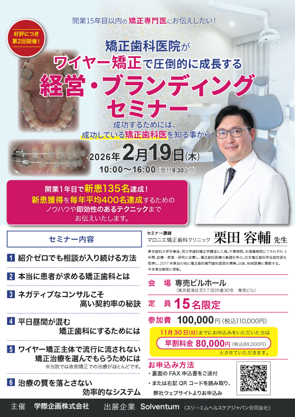 矯正歯科医院が圧倒的に成長する経営・ブランディングセミナー[3M2026]