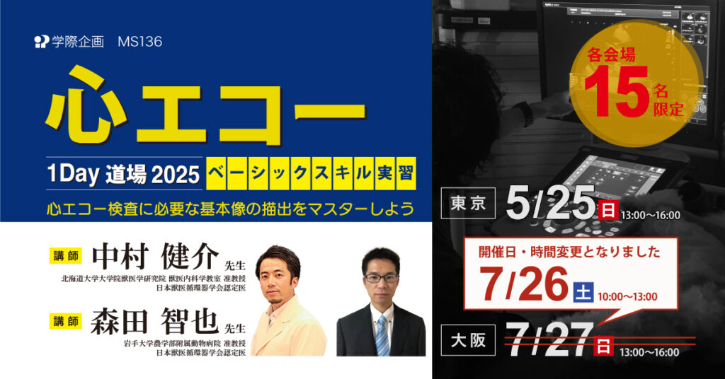 MS146 原康先生・藤田幸弘先生・原田恭治先生・一戸登夢「⼩型犬の膝蓋骨内方脱臼の外科治療1Dayドライラボ」»詳細はこちら