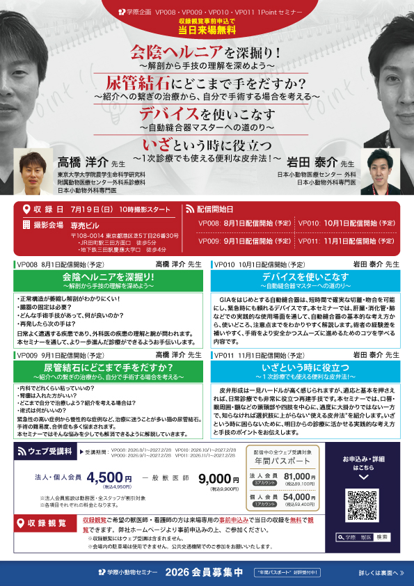 収録観覧ご希望の獣医師・看護師の方は来場専用の事前申込みで当日の収録を無料で観覧できます。