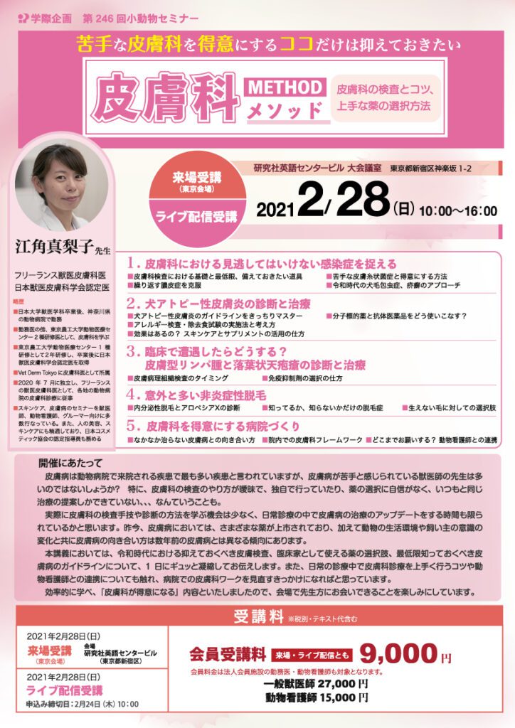 | 会員獣医師 | 9000円(税込9900円)(ハンドアウト付き)ご入会はこちら |